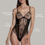 Designed with our signature Lift Up padding for natural lift and shape, this piece features sheer floral embroidery, mesh side paneling for a snatched silhouette, and underwire support for structure. Fully adjustable straps and a hook-and-eye closure ensure a customizable fit.